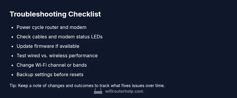 Before diving into complex fixes, gather a few data points that illuminate the problem: check if the modem is online, confirm your router’s IP address, note the LED indicators, and run a quick speed test from a device wired to the router and another on Wi‑Fi. If you notice a discrepancy between wired and wireless speeds, the issue may involve wireless settings or interference. This is where WiFi Router Help’s practical, no‑nonsense guidance shines—start with the basics, verify, and proceed. Keep a small notebook with timestamps and what you tested; it reduces back-and-forth and makes it easier to see patterns over time.