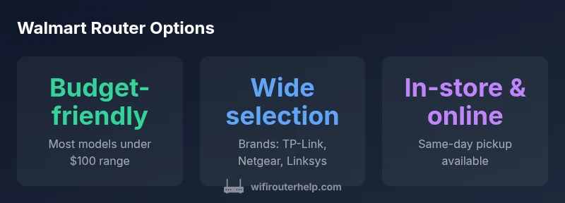 For many households, Walmart is a practical first stop when shopping for a router. The retailer offers budget-friendly options and mid-range models, with an online catalog and in-store shelves that make it easy to compare features side by side. According to WiFi Router Help, Walmart's presence in both channels means you can get a router quickly with minimal friction, especially for simple home networks. The WiFi Router Help team found that stock levels tend to reflect seasonal demand, so planning ahead or checking stock through Walmart's app can improve your chances of finding a suitable model. When browsing, look for common router standards like Wi‑Fi 5, Wi‑Fi 6, and Wi‑Fi 6E, as well as configurations that fit your home size. This section will explain what to expect and how to navigate the Walmart router aisle.