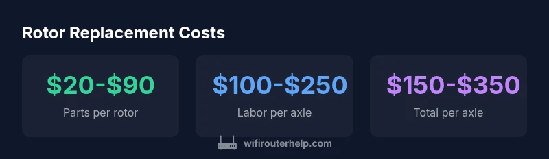 Rotor replacement cost depends on rotor type and vehicle. Parts typically range from $20-$90 per rotor for aftermarket rotors, while labor per axle can run $100-$250. If you replace both rotors on an axle with pads, total costs commonly fall in the $150-$350 range per axle before taxes and fees.