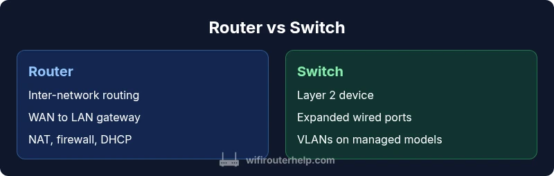 Explore the difference between a router and a switch in networking, including roles, layers, and practical guidance for home networks. Learn how each device works and where to place them for reliable connectivity.