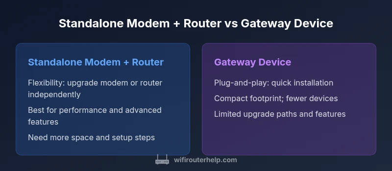 Standalone router plus separate modem generally offers the best balance of control and future-proofing for wifi. Gateways simplify setup but limit upgrades. See our full comparison for scenarios, recommendations, and practical setup steps.