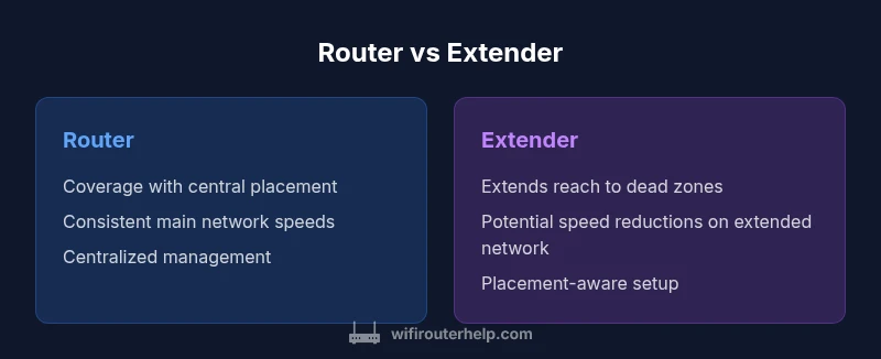A router is the network’s core; an extender broadens coverage. In many homes, a well-placed router suffices, but dedicated extenders or a mesh system can eliminate dead zones. Start with router optimization, then add an extender only where needed.