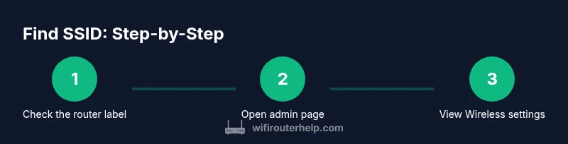 You will locate your router’s SSID, the network name, quickly by checking the physical label on the router or by opening the admin page. This guide outlines the simplest path: start with the router’s sticker, then use a browser or app to confirm the SSID for 2.4 GHz and 5 GHz networks. According to WiFi Router Help, this approach saves time and avoids guessing.