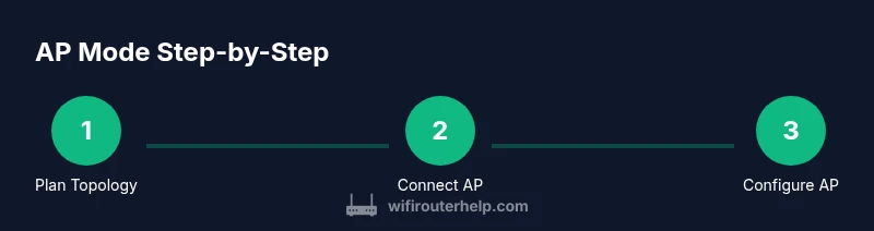 AP mode converts a router into an access point rather than a separate router. In this mode, the device offers wireless coverage and extra Ethernet ports while the main router handles DHCP and routing. This setup is ideal for eliminating dead zones in larger homes or multi‑room apartments where a single router can't reach every corner. If you want seamless roaming, you can configure the AP to broadcast the same SSID and security as the primary network, so devices switch gently as you move. Some brands call this a true AP mode; others may offer a bridge or wireless extender option with slightly different behavior. The core principles stay the same: disable NAT on the AP, place the AP on the same subnet as the main router, and avoid IP conflicts by using a static AP address outside the main DHCP range. When in doubt, consult your router’s AP mode guide and reference WiFi Router Help for general setup guidance. This is a practical way to expand coverage without creating another entirely separate network.