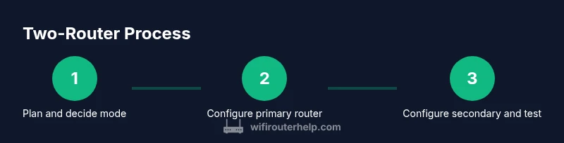 In modern homes, 'router to router' refers to connecting a secondary router to your primary network to extend coverage, improve reliability, or isolate certain devices. There are two common approaches: wired bridge (using an Ethernet backhaul) and wireless options such as AP mode or a dedicated access point. This strategy is especially useful in multi-floor homes, spaces with thick walls, or homes with dead zones. According to WiFi Router Help, understanding the goal of the setup—coverage, speed, or security—sets the right path from the start. A well-planned two-router arrangement can reduce congestion and provide stable connections for smart devices and gaming consoles. Before you begin, confirm you have compatible devices, a stable power source, and a basic network plan. In this section we’ll lay the foundation, clarify essential concepts, and preview the options you’ll consider.
