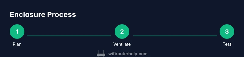Enclosures should not block essential air intake areas or shield antennae. Avoid metal boxes, which can reflect or absorb wireless signals; wooden or plastic boxes are generally better for preserving signal. Keep the router’s power adapter out of the enclosed space to reduce heat buildup around the device. Ensure there is at least a small vented gap around the lid to allow heat to escape. Regularly inspect the enclosure for dust buildup and wipe it clean to maintain ventilation efficiency. Remember that enclosing a router can affect warranty or support in some cases, so check manufacturer terms and use a non-conductive mounting surface inside the box.