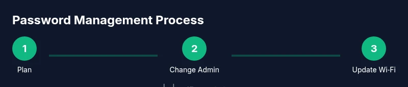 Identify which credentials to update (admin vs Wi‑Fi), decide rotation frequency, and choose a password manager for storage. Create a written plan covering who can make changes and how changes will be documented.