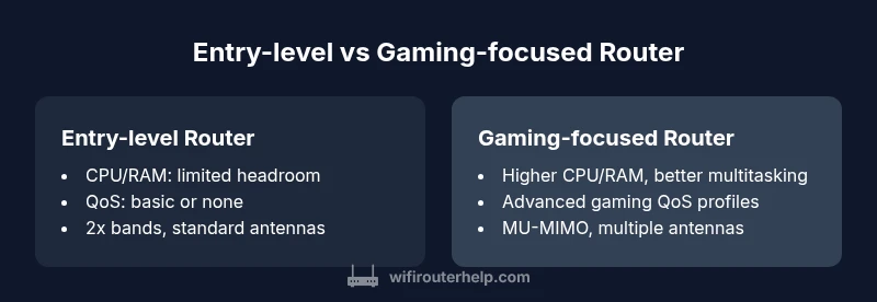 | Feature | Entry-level router | Gaming-focused router |