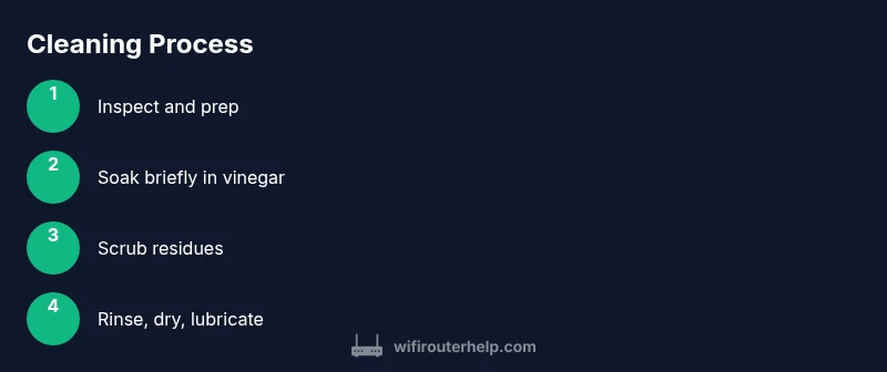 According to WiFi Router Help, practical maintenance habits extend beyond networking hardware. This article applies a common household cleaner to tool maintenance, showing how a mild vinegar solution can safely remove rust, pitch, and resin from metal router bits. Acetic acid in vinegar dissolves rust and softens sticky residue, making it a gentle alternative to harsher solvents when used with care. The key is to avoid overexposure on sensitive metals and to finish with thorough drying to prevent new rust. In this section, we'll explore when vinegar makes sense and how to approach it safely to protect cutting edges while restoring performance.