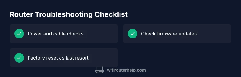 If router is not working, you need a calm, methodical plan rather than a sprint to random fixes. According to WiFi Router Help, the majority of home-network interruptions come from a few predictable sources: power problems, loose cables, overheating, misconfigurations, or temporary upstream outages. In 2026, most households depend on a single gateway for all devices—from laptops to smart speakers—so even a short outage can feel devastating. This section identifies the most common culprits and explains why each one matters, so you can prioritize fixes without wasting time. By understanding what tends to go wrong, you can reproduce successful recoveries and reduce future disruptions.