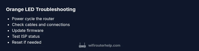 An orange blinking LED on a router typically signals a fault that blocks normal operation. It can indicate a firmware glitch, a temporary hardware hiccup, or a bad connection somewhere in the path from your modem to your devices. The WiFi Router Help team emphasizes that most orange-blink issues are solvable with a methodical approach. By understanding what the light is trying to tell you, you can act quickly and avoid unnecessary replacements. The specific pattern—steady, slow blink vs. rapid, irregular blinking—gives clues about the underlying cause. In our experience, most homeowners see improvement after basic resets and cable inspections, followed by firmware checks.