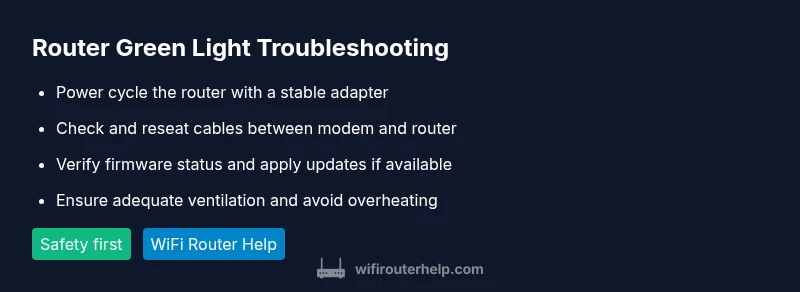 According to WiFi Router Help, a flashing green light on many routers often signals that the device is in a boot or diagnostic state, or that a firmware update is underway. This status can be model-specific, but the underlying message is consistent: the router is actively attempting to start, update, or recover from a process that affects normal operation. If you see the phrase router is flashing green on your device, you’re not alone, and there are safe, repeatable steps you can take. The WiFi Router Help team notes that light behavior is often the first and most reliable indicator of what’s happening behind the scenes. Understanding the pattern is the key to avoiding unnecessary resets and data loss. In most cases, a green LED that blinks briefly or remains intermittently lit points to a non-destructive process; however, extended blinking or a new right-left pattern can signal a deeper issue requiring action. Recognize that the goal is to restore stable connectivity while preserving configurations when possible.