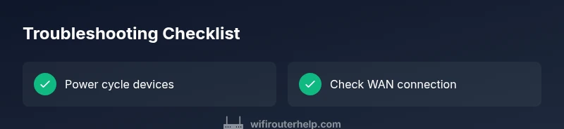 Quick answer: Power cycle both modem and router, then verify the WAN status in the router’s admin interface. If the link shows but there’s no internet, test a wired device to rule out Wi‑Fi issues, and inspect cables and LED indicators. If this doesn’t fix it, follow the diagnostic flow in this guide. WiFi Router Help recommends a calm, methodical approach for a router without internet.