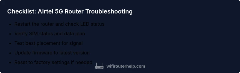 Before diving deep, run through these fast checks. They cover the majority of at‑home Airtel 5G router issues and can be done in minutes: