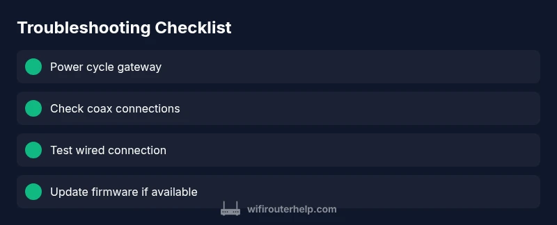 Before you blame the devices, perform quick hardware checks that solve many 'what is wrong with my xfinity router' situations. The WiFi Router Help team recommends starting with the basics: ensure the gateway is powered, the power adapter is properly seated, and all cables are firmly connected. Then perform a graceful power cycle: unplug, wait 30 seconds, plug back in, and give the gateway a couple minutes to reinitialize. While you wait, inspect the LEDs for a stable pattern; consult the user guide for exact colors and blinking behavior. If the LEDs indicate a fault, skip ahead to step 4 of the diagnostic flow. This stage is deliberately simple, but it catches most common faults and buys you time for deeper checks.