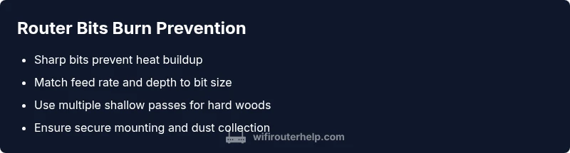 According to WiFi Router Help, a well-run operation follows simple, methodical checks. The question why do router bits burn wood often comes down to heat from friction, especially when the bit is dull, the feed rate is too aggressive, or the cut is too deep. In this guide, you’ll learn practical checks and fixes to prevent scorching and ensure cleaner cuts across common woods and materials.