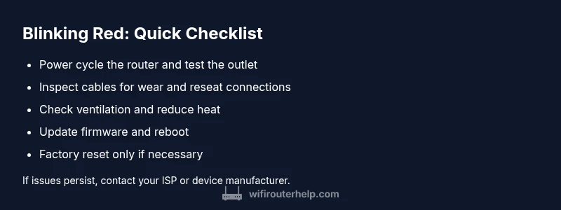 When your router displays a blinking red LED, you should treat it as a high-priority signal. It often indicates a problem with power delivery, a hardware fault, or a failure to negotiate a proper connection with your internet service provider. For homeowners and tech enthusiasts, understanding the cause is crucial to restore stability quickly. In this guide from WiFi Router Help, we walk through the most common reasons and the practical steps you can take. Remember, the exact meaning of the blinking pattern can vary by model, so refer to your user manual as well. In the context of this article, the phrase why router blinking red is used to describe the situation and guide you toward a fast, safe resolution. Until the light stays solid or returns to normal after a reset, treat the issue as potentially urgent and prioritized. We'll cover safe checks first, then deeper diagnostics, and finally when to call in professional help to prevent damage or data loss in 2026.